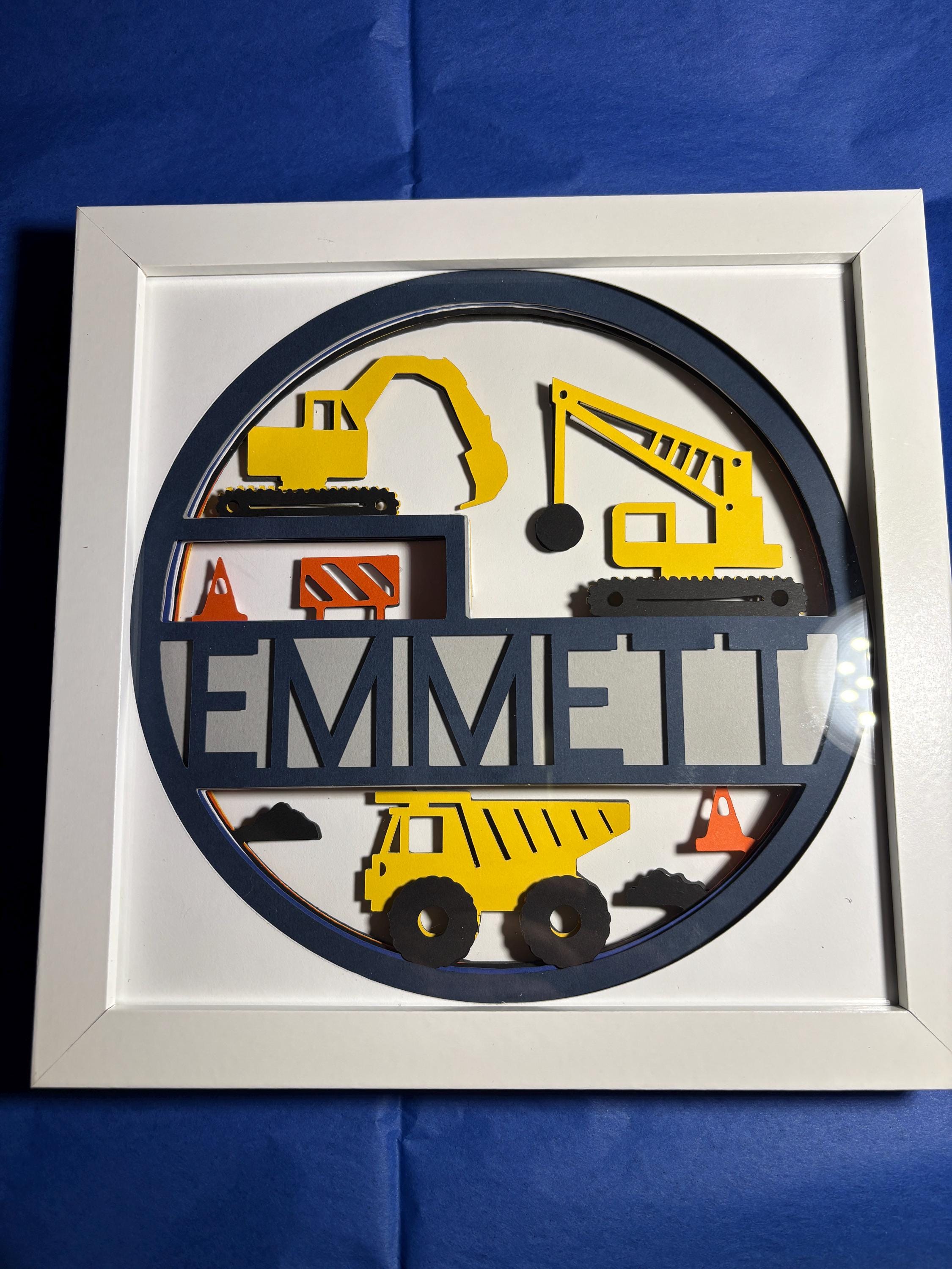 This construction name sign SVG file is a digital laser cut design, perfect for creating a personalized nursery or kids’ room wall sign. Featuring a fun digger theme, this construction sign works with Cricut, Glowforge, and other laser cutting machines. The file is ready for instant download and makes a unique baby shower or birthday gift.