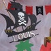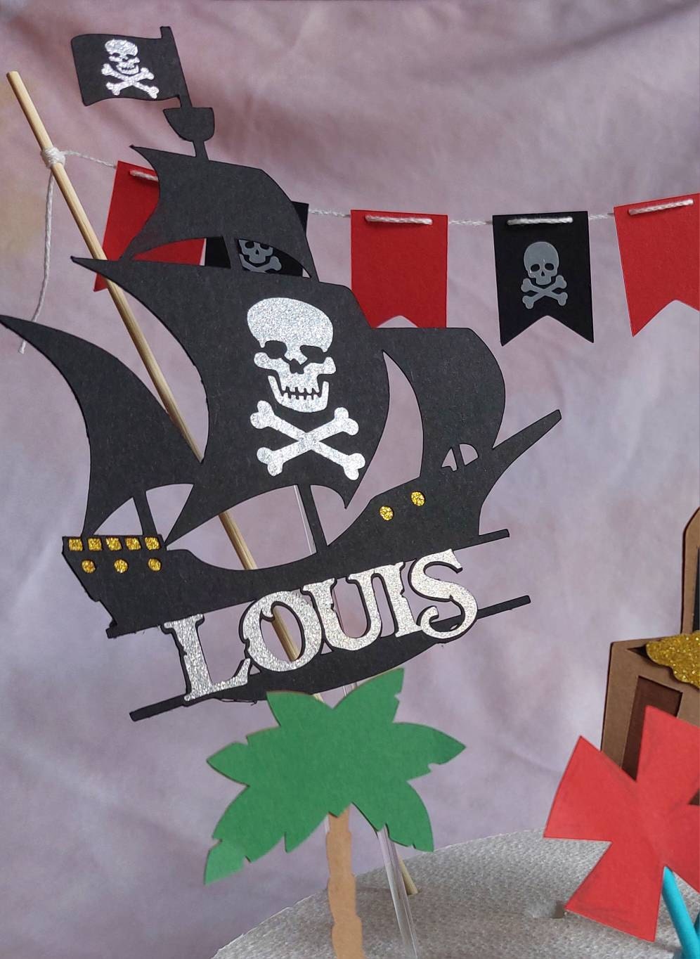 Schade, dass es keine Details gibt. Ich habe die Fenster anders hinterlegt und den Totenkopf au Glitzerfolie gemacht. Fand ich einfach schöner. Als Caketopper super zum Piratenthema.