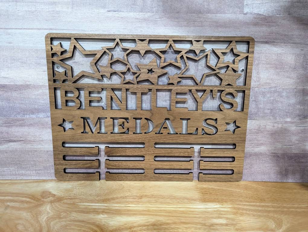 Stars Medal Holder SVG: Sports Name Sign Laser Cut Template (Digital Download)
