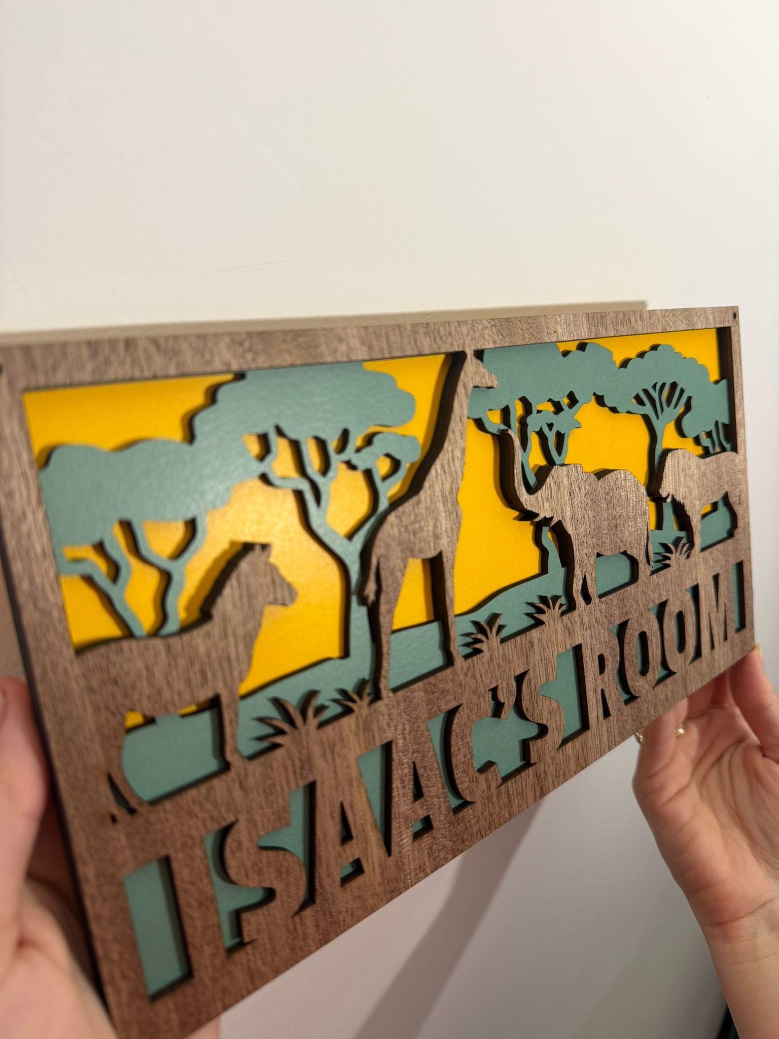 This digital download features a designer three layer name sign for door or wall hanging. this is a SVG Laser Cut Files for laser machines, CNC routers and other craft machines. in DXF, AI, CDR formats too.