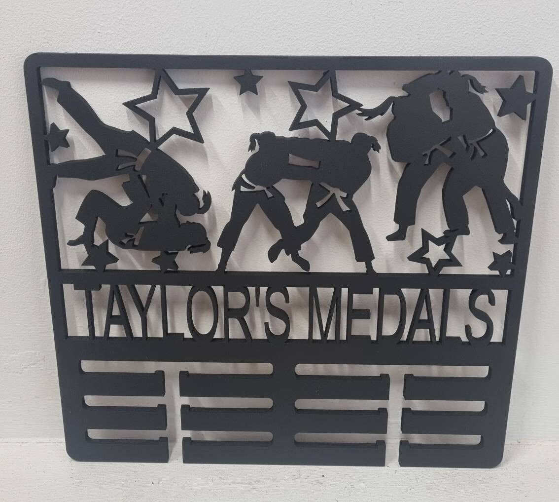 This digital download features a designer medal holder name sign for door or wall hanging.