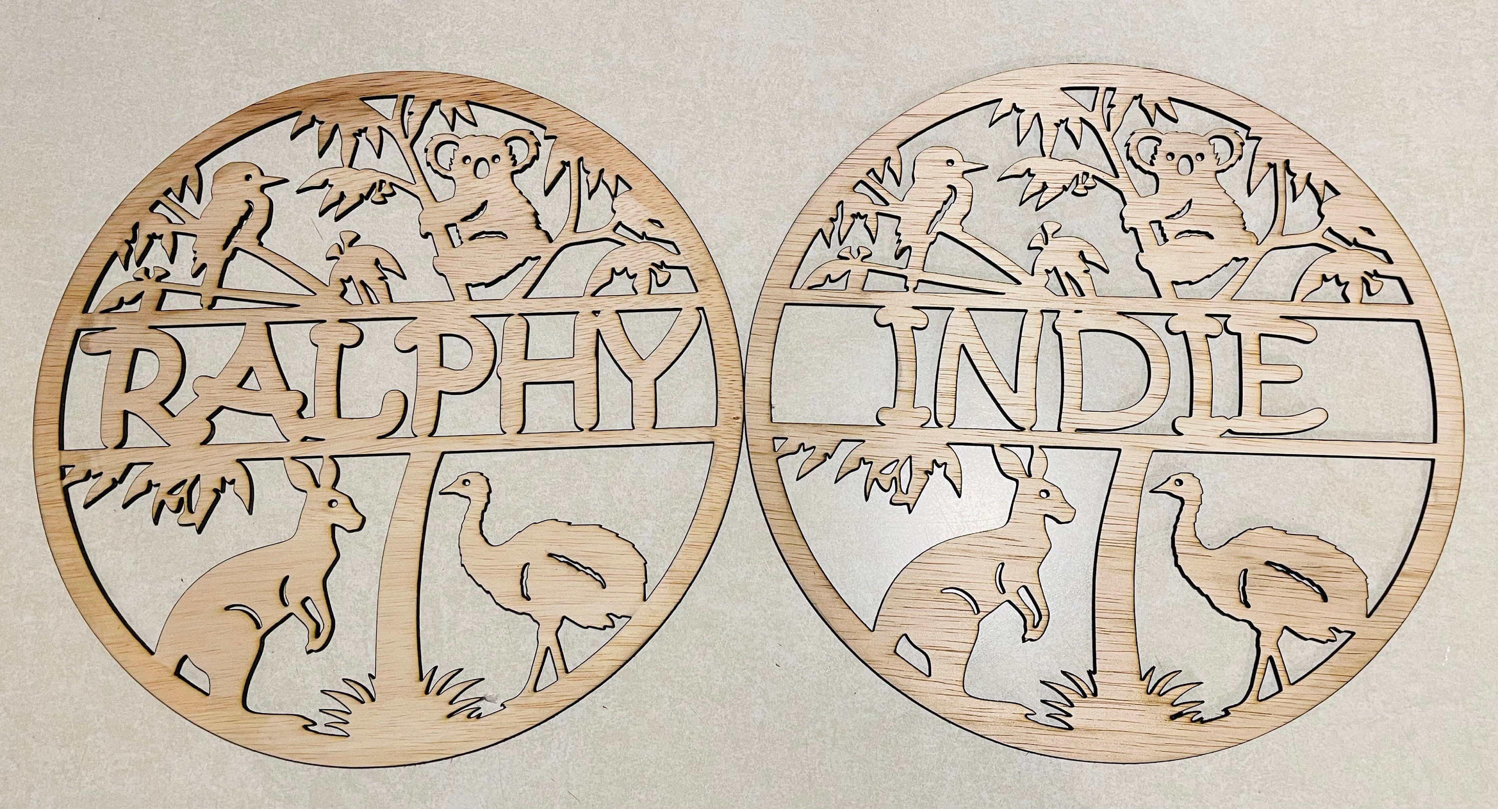 I have designed these name signs in Coreldraw and use lightburn to cut. I have not used all the software available so if these options do not work for you then please message me as I am always happy to help and improve my designs to work for all.