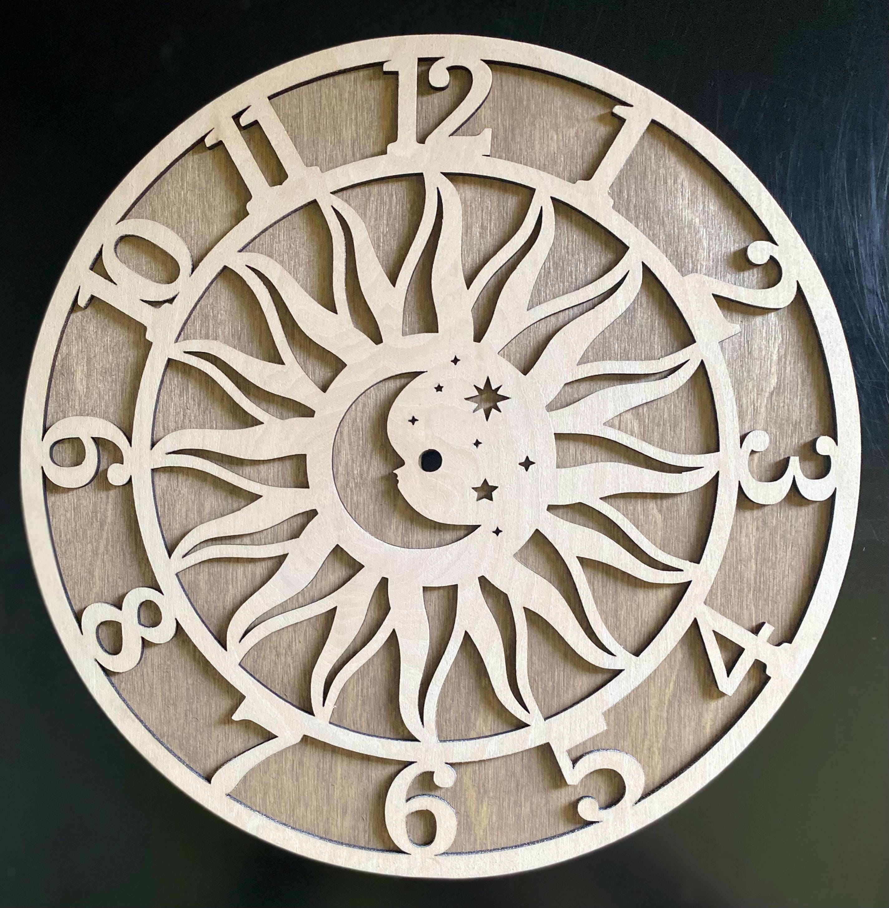 Sun and Moon Wall Clock Laser Cut Files, Celestial clock templates (Digital Download)