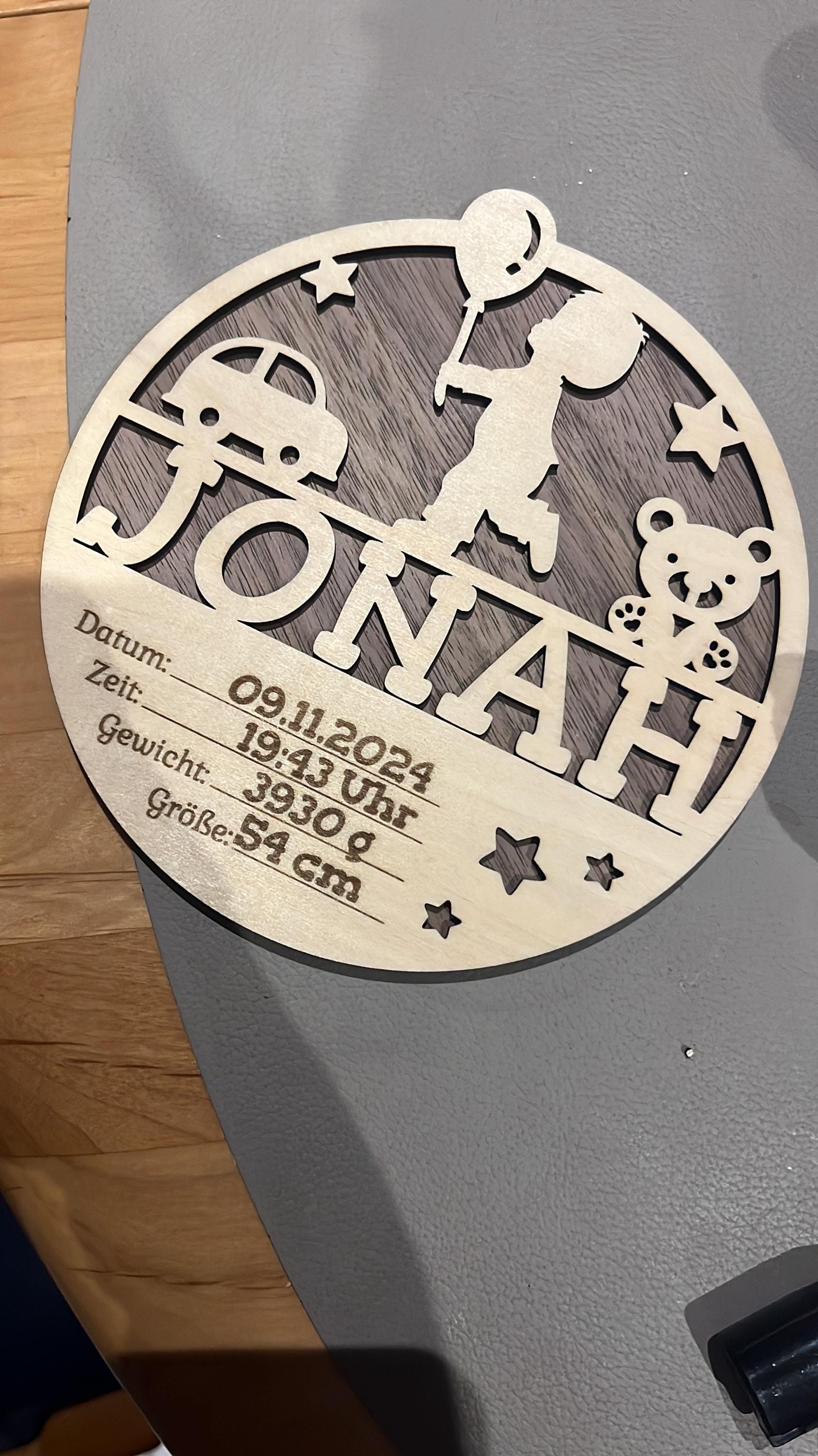 Ich hab zwei Version Junge/Mädchen gekauft, die Dateien sind einfach umzusetzen, nachdem ich bei meiner Laser Verarbeitung dahinter gekommen bin, den Namen nicht " bei Überlappung verschmelzen" sondern Balken und Name zu markieren und auf "Trennen" gehen. Ich stand etwas auf dem Schlauch ;-)
