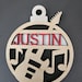 (Name needs to be linked to design before cutting on laser machine for cut out name ornaments)