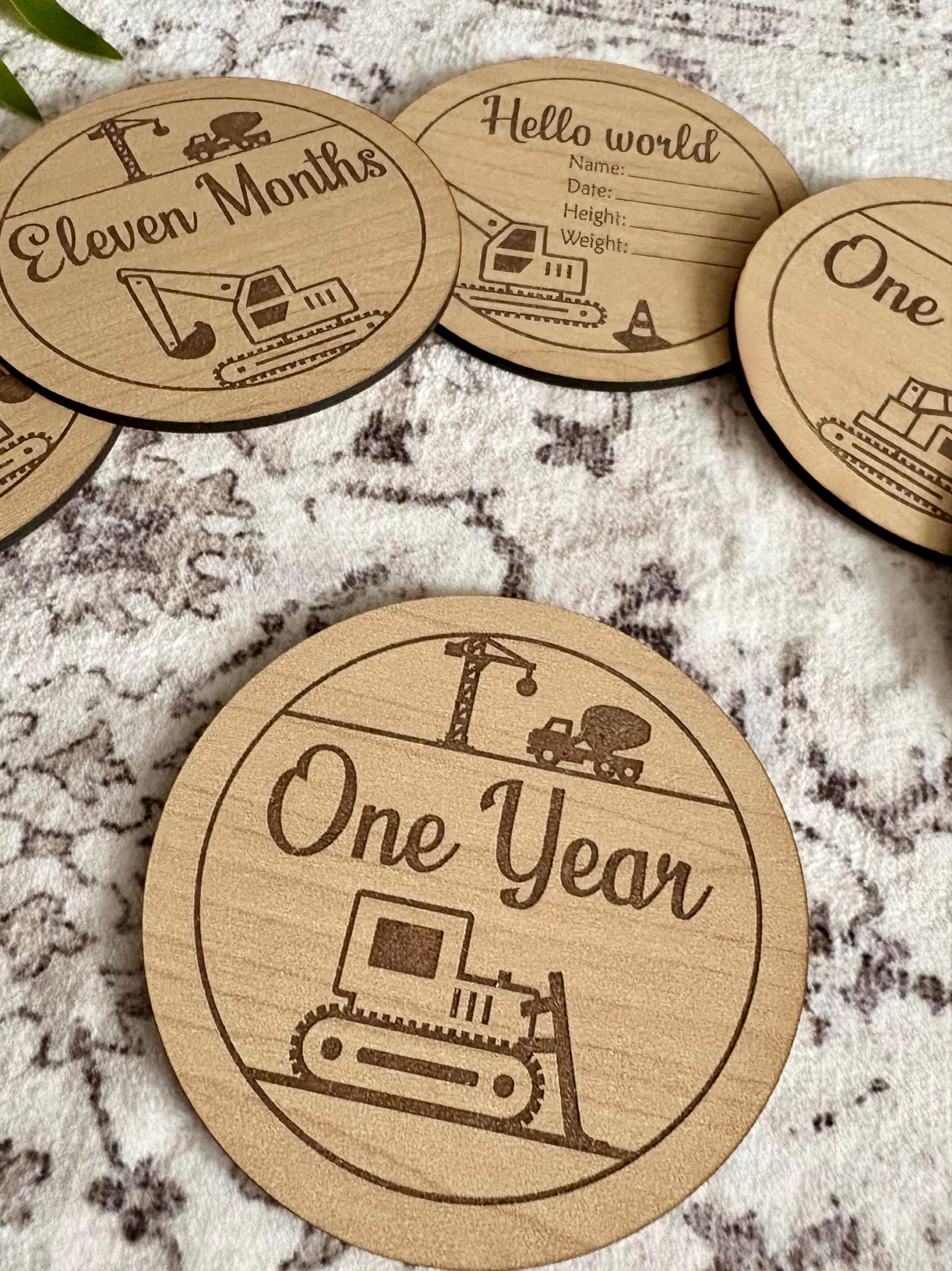 Construction Milestone Discs SVG: Nursery Theme, Laser Cut Template (Digital Download)