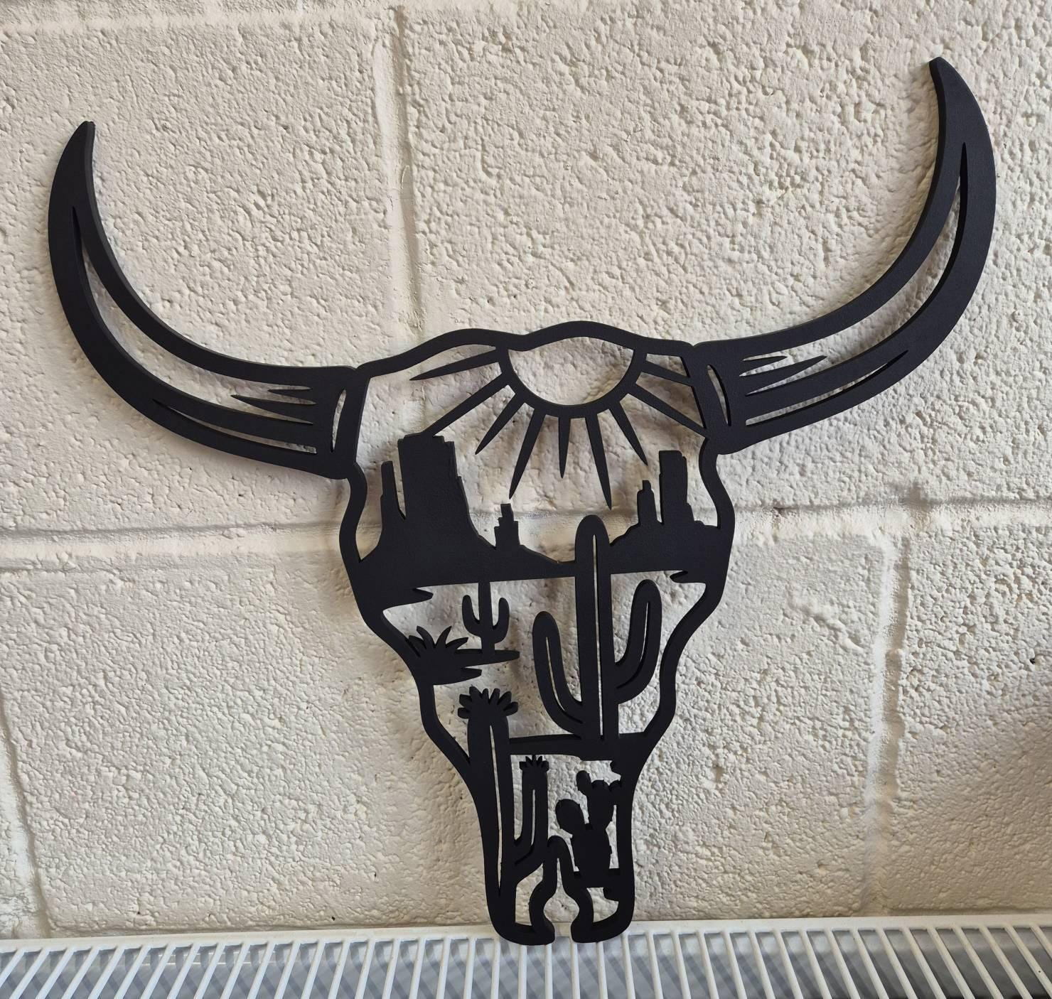 This digital download features a cow skull with desert scene cut out design. this file is a SVG Laser Cut Files for laser machines, CNC routers and other craft machines. in DXF, AI, CDR formats too.