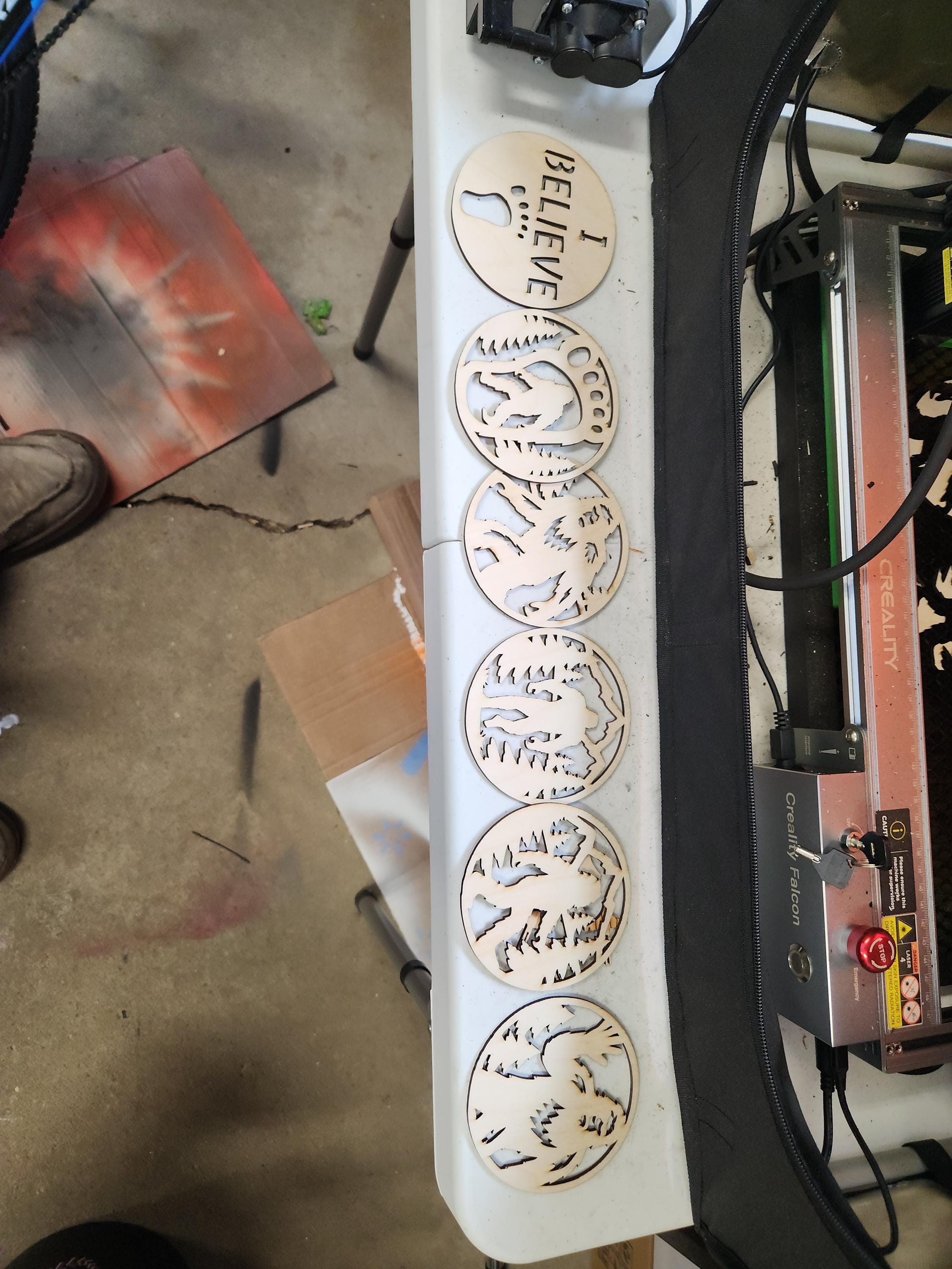 6 round coaster designs (Bigfoot poses + I Believe version)