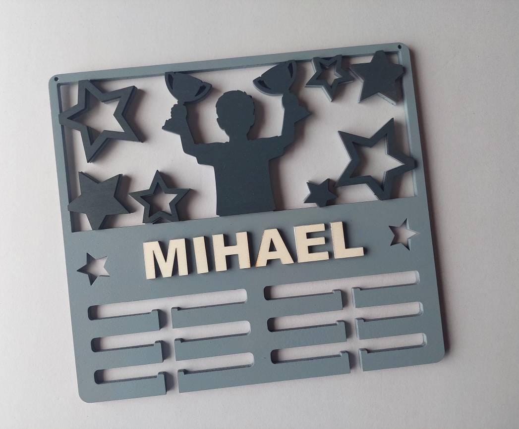This digital download features a designer medal holder name sign for door or wall hanging.